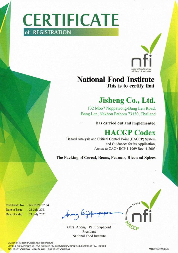 ได้การรับรอง HACCP Codex