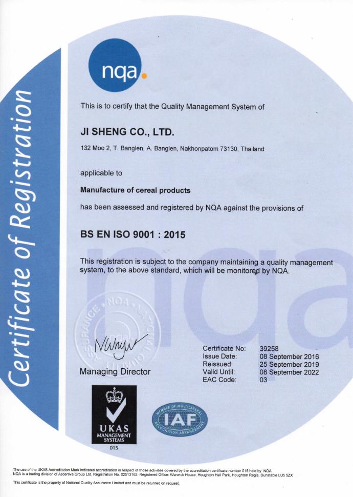 ได้การรับรอง ISO 9001:2015