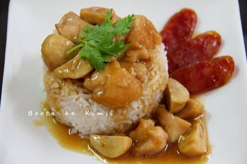 2.หั่นอกไก่เป็นชิ้นพอคำ หมักด้วยซอสปรุงรส ซอสหอยนางรม เหล้าจีน น้ำตาลทราย พริกไทย -จากนั้นตั้งกระทะใส่น้ำมัน ผัดกระเทียมและขิง(ขิงนำมาสับให้ละเอียด)จนหอม ใส่ไก่ที่หมักลงไปผัดจนสุก